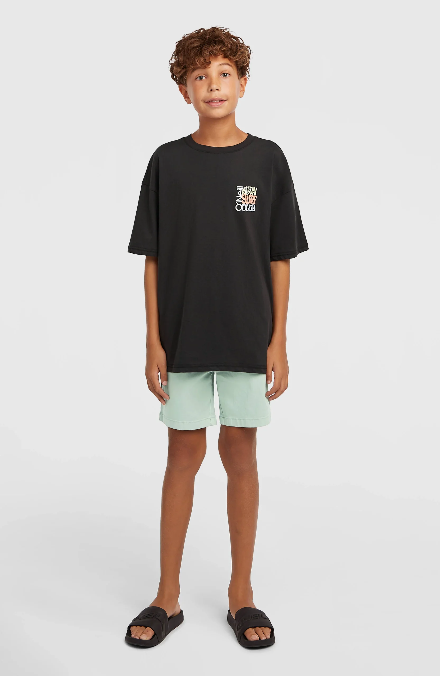 Het losvallende T-shirt Back Print mag niet ontbreken in de kledingkast voor jonge surfers. Dit shirt van comfortabel halfzwaar katoen zit gewoon precies goed. Het heeft een klassiek model met een geribde ronde hals, naar voren geplaatste schoudernaden, en een opvallende print op waterbasis op de borst en rug.