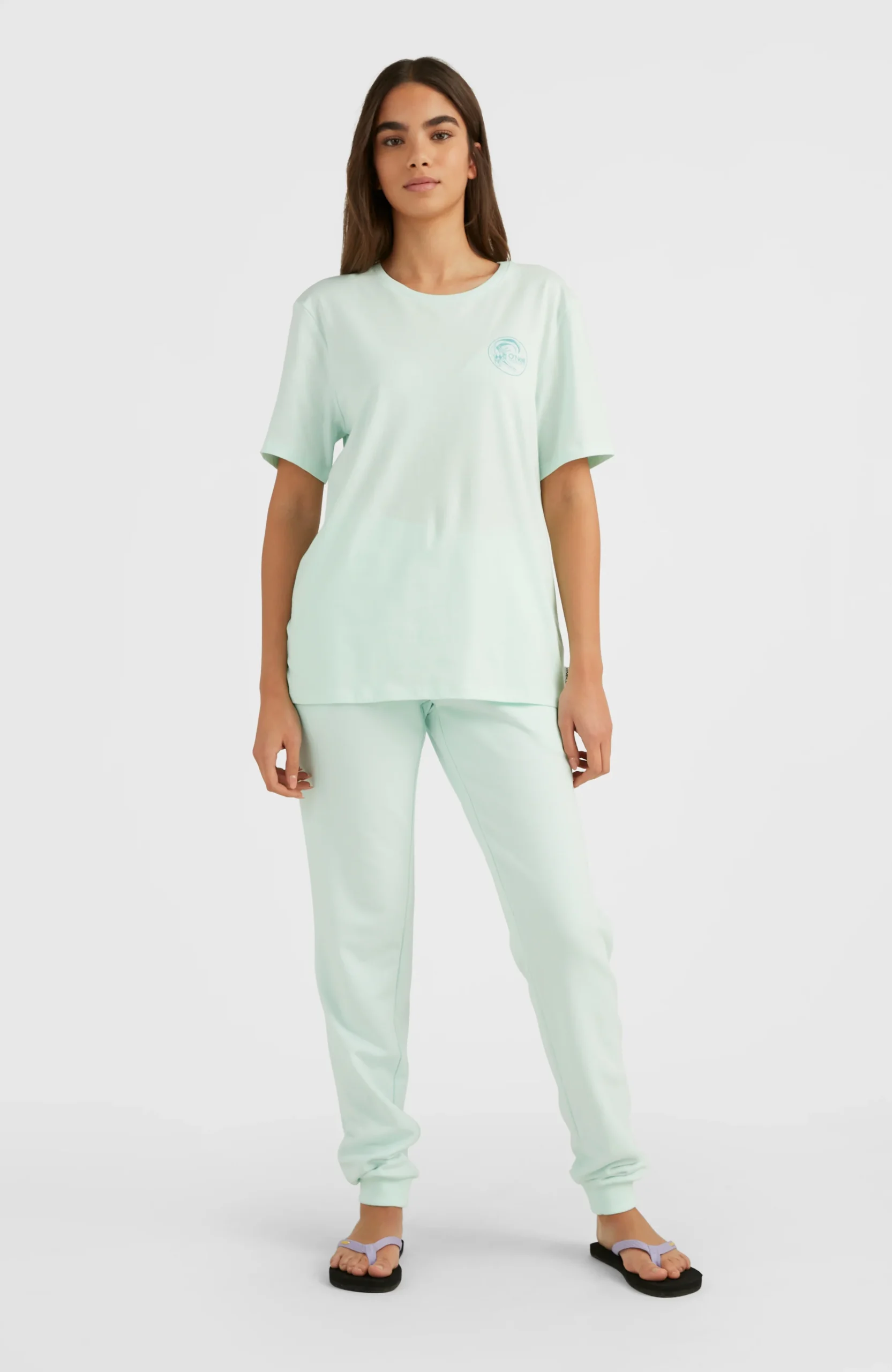 De Circle Surfer Mid Waist Sweatpants heeft een graphic aan de achterkant, een elastische tailleband en verborgen zakken in de zijnaden voor een slank silhouet. Een stijlvolle joggingbroek met taps toelopende pijpen met geribde manchetten, 100% O’Neill Blue en 100% comfortabel.