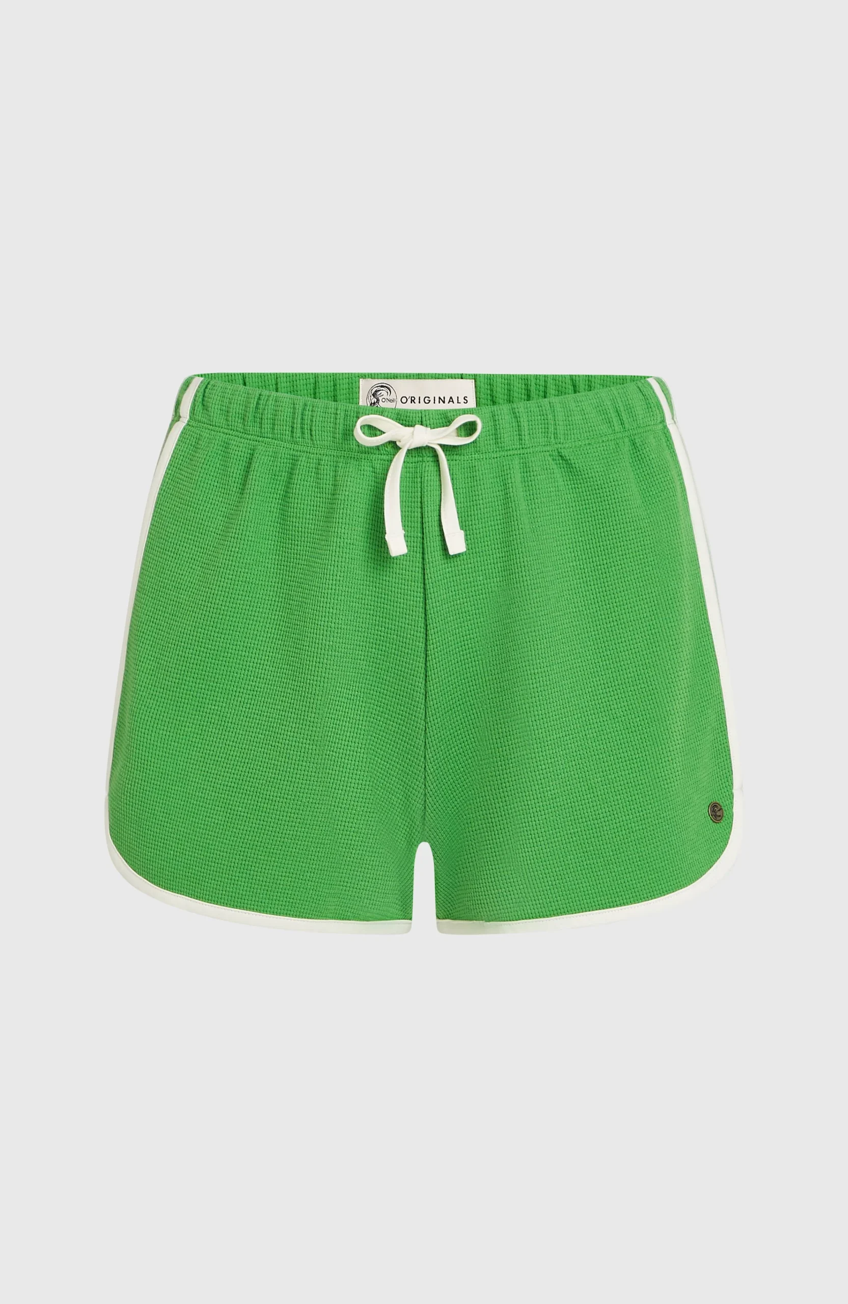 De short O’Riginals van gewafelde stof heeft een vaste tailleband, een trekkoordje, een gevormde zoom, contrasterende biesjes – en onmiskenbare retro vibes.