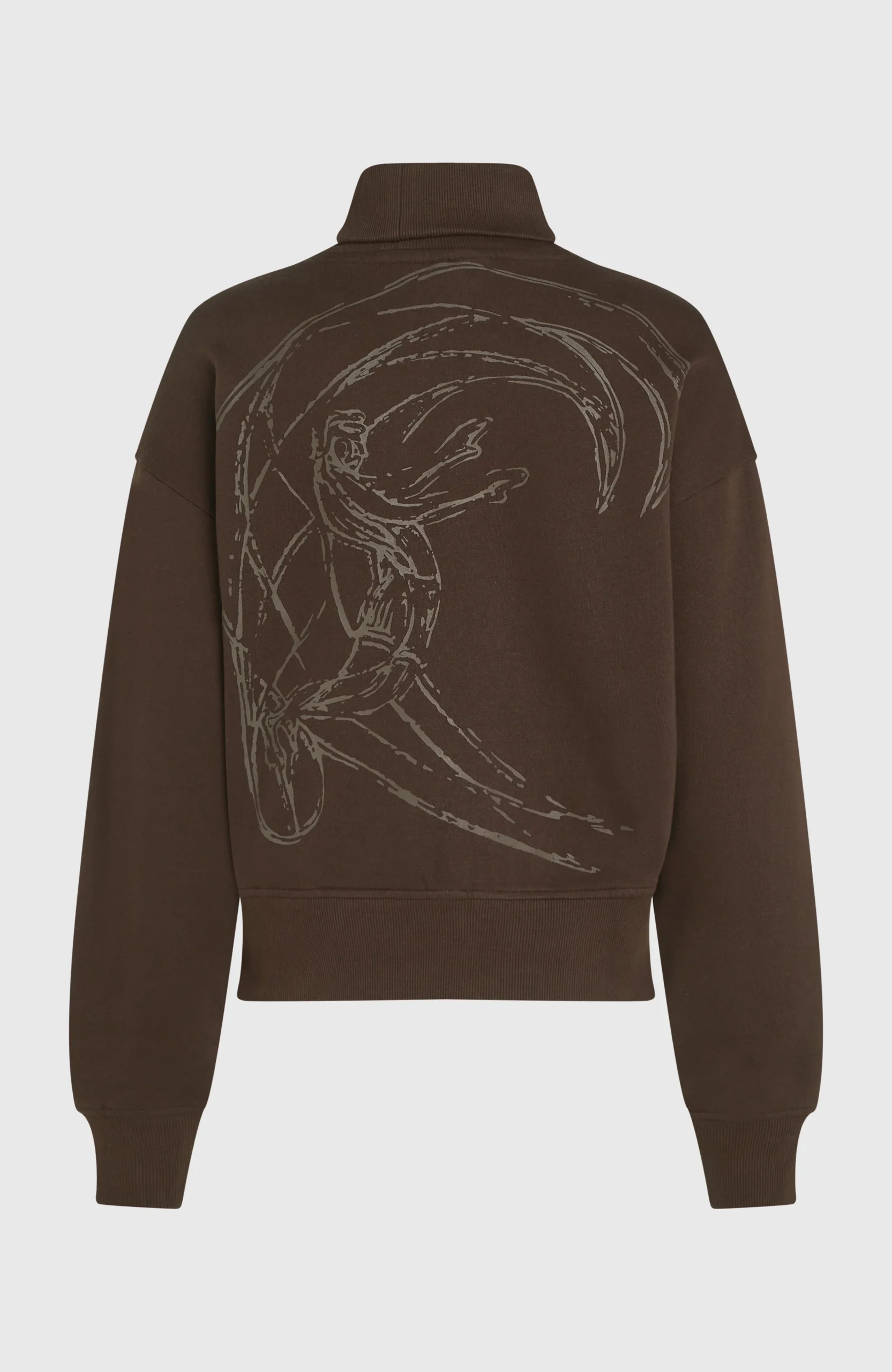 De sweater O’Riginals met hoge hals is aan de achterkant voorzien van een subtiele tekening van een surfer. De kraag biedt wat extra warmte op frisse dagen, terwijl de verlaagde schoudernaden en geribde mouwboorden zorgen voor een praktische en relaxte pasvorm.